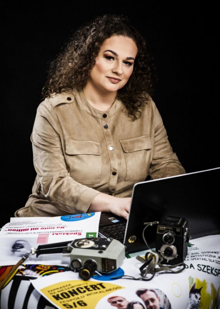 Za tą skomplikowaną nazwą kryje się największe serducho w ekipie CPK. Kobieta co ogarnie wszystko: przygotowuje konkursy, prowadzi social media i stronę internetową, montuje filmiki, robi dokumentacje merytoryczne, pisze wnioski o dotacje, prowadzi rejestry naszych podopiecznych, kontaktuje się z odbiorcami i twórcami, rozwozi plakaty i kocha zwierzęta. Gosia to też totalne wsparcie psychiczne, potrafi skutecznie pocieszyć i ma tyle ciepła, że może nim obdarzyć nie tylko naszą Ekipę, czego doświadczają nasi widzowie i artyści. Jest bardzo oddana Centrum Promocji Kultury – Gosiu cudownie że jesteś!